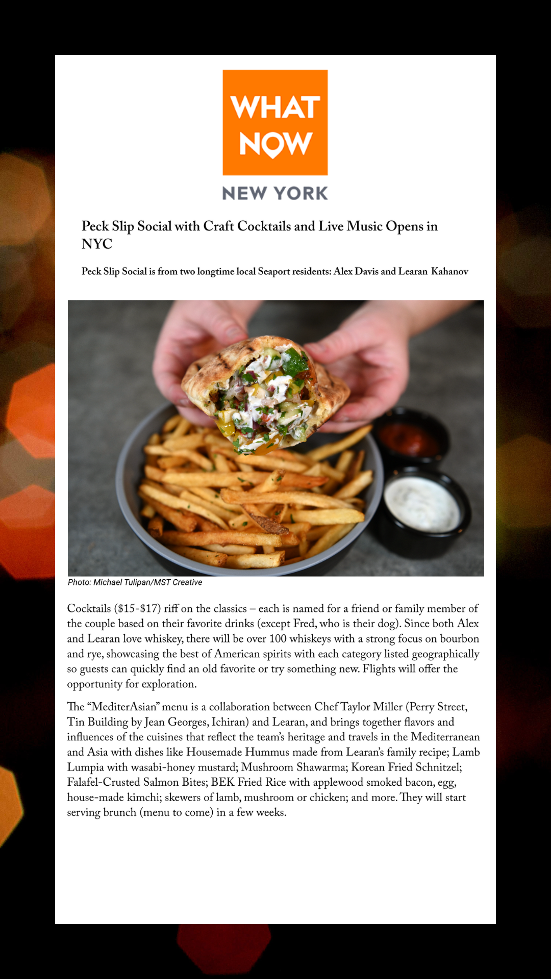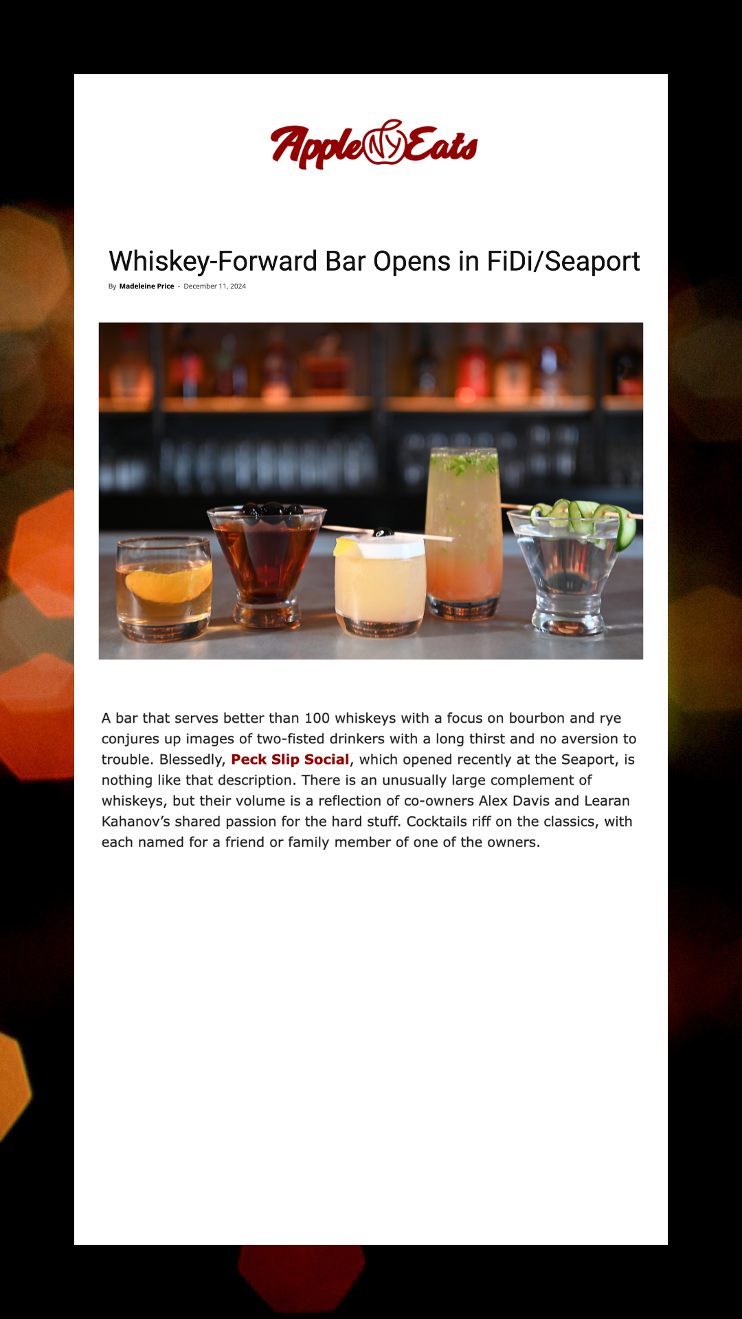 “Lower Manhattan is inundated with taverns that target lawyers, bankers, tourists, and assorted other demographic slivers, but is lacking in watering holes that cater to Downtown denizens. This deficit may soon be cured, however, by Peck Slip Social, a new bar at the corner of Peck Slip and Front Street, which the founders describe as “a bar for locals, by locals.””